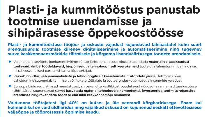 Tulevikuvaade tööjõu- ja oskuste vajadusele: plasti- ja kummitööstus