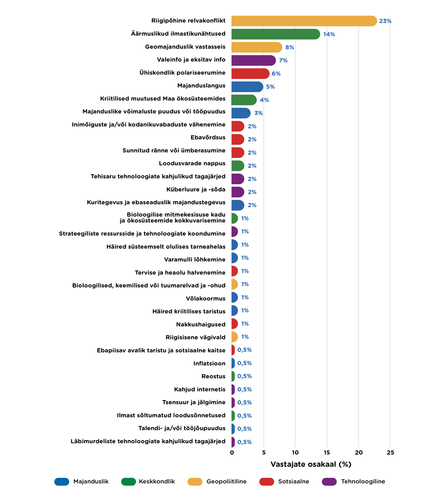 Joonisel 2 on toodud majandusega seotud trendid, mis tööandjate hinnangul majandustegevust kõige enam muudavad. Kolm kaalukamat trendi on digitaalse ligipääsu laiendamine, kasvav elukallidus ja kõrgemad hinnad ehk inflatsioon ning suurenevad pingutused ja investeeringud CO₂ heite vähendamiseks. Neile järgnevad kasvav tähelepanu tööjõu- ja sotsiaalküsimustele, aeglasem majanduskasv ning suurenevad pingutused ja investeeringud kliimamuutustega kohanemiseks.